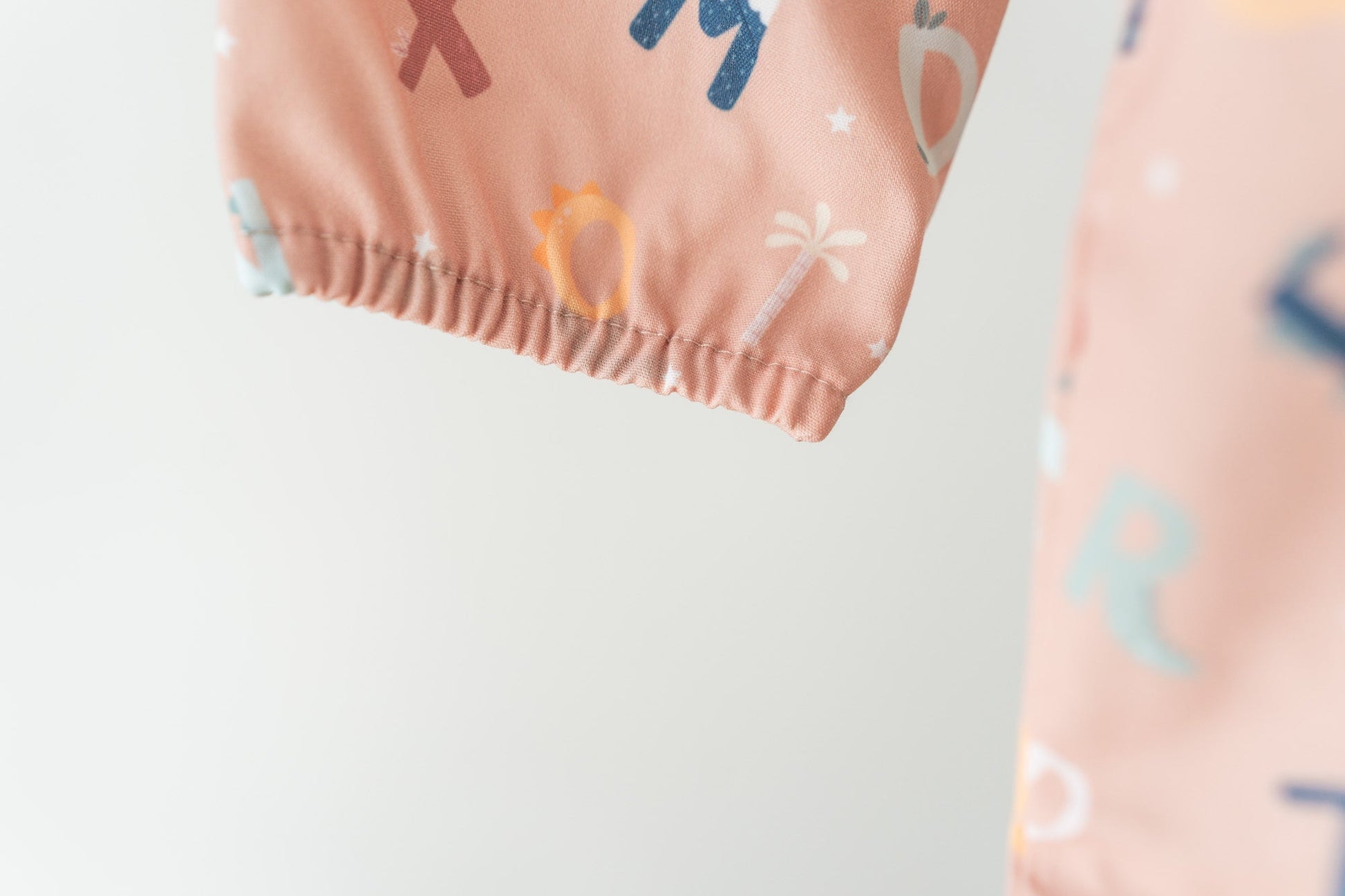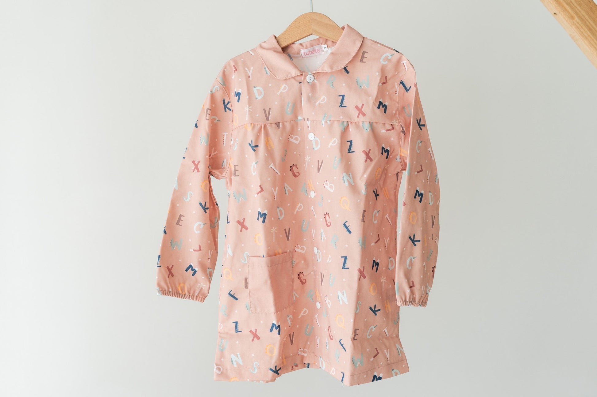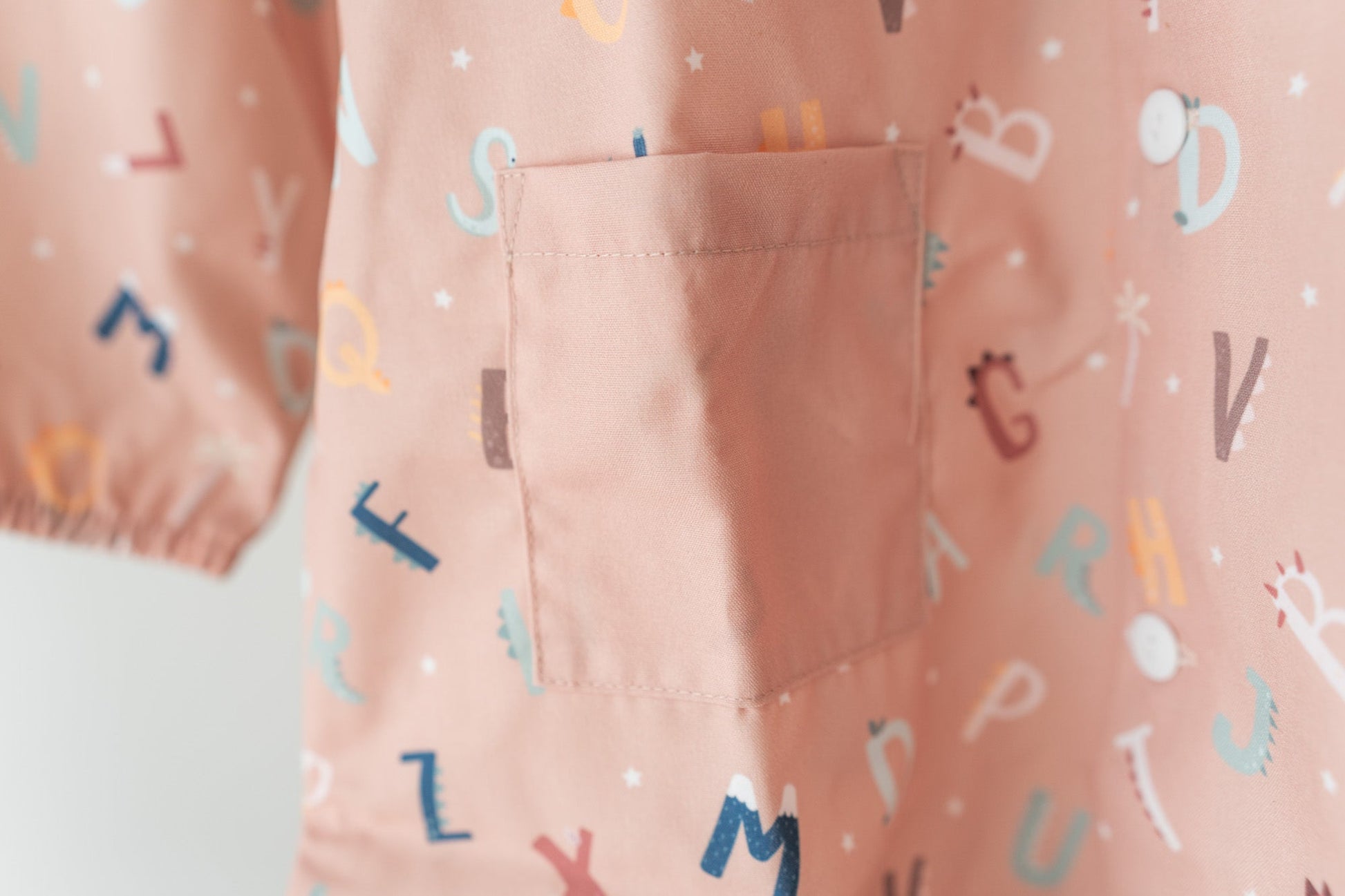 Grembiule per asilo in fantasia personalizzato con nome ricamato.