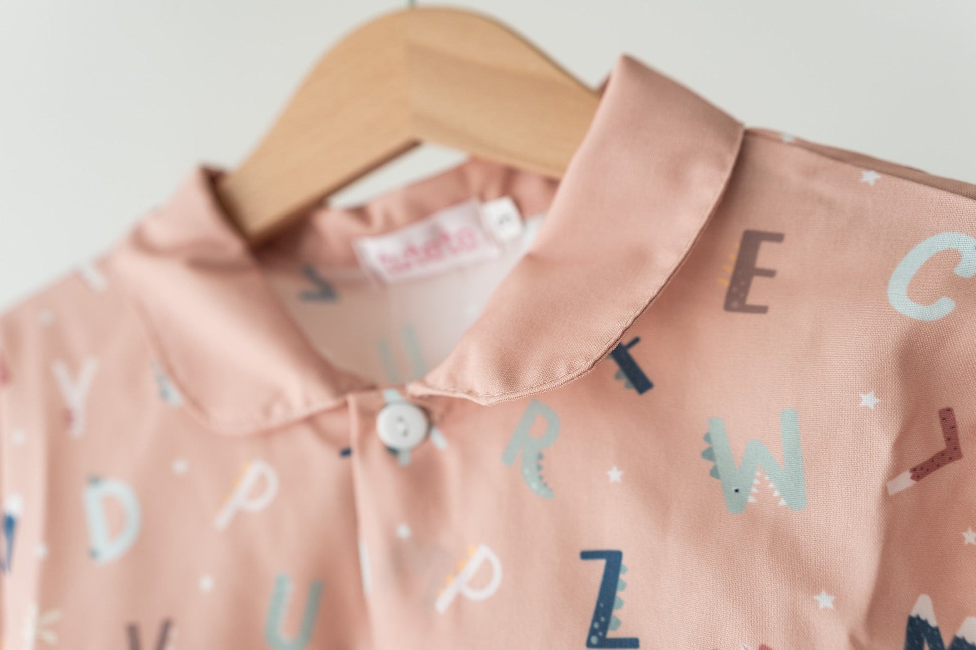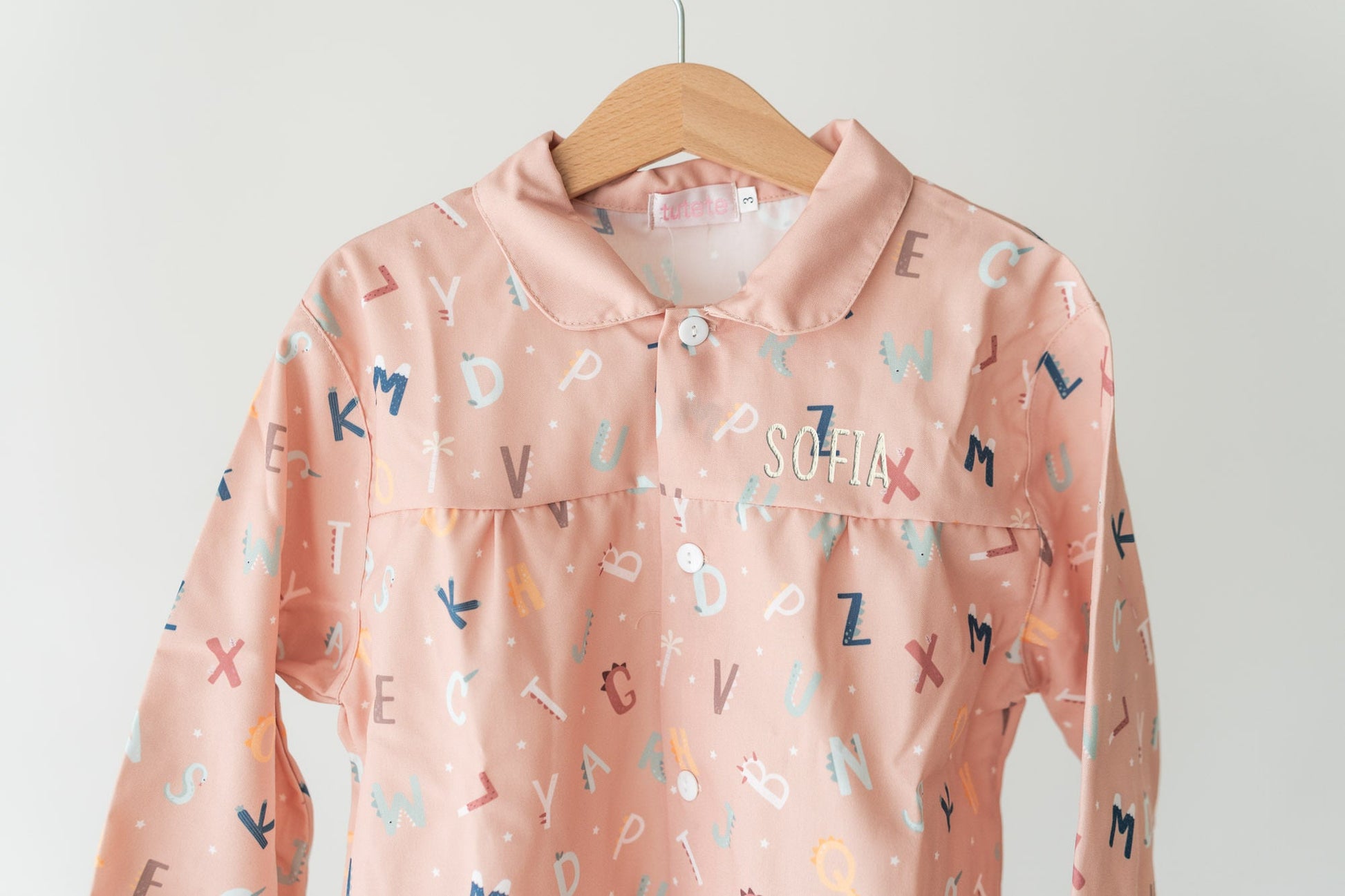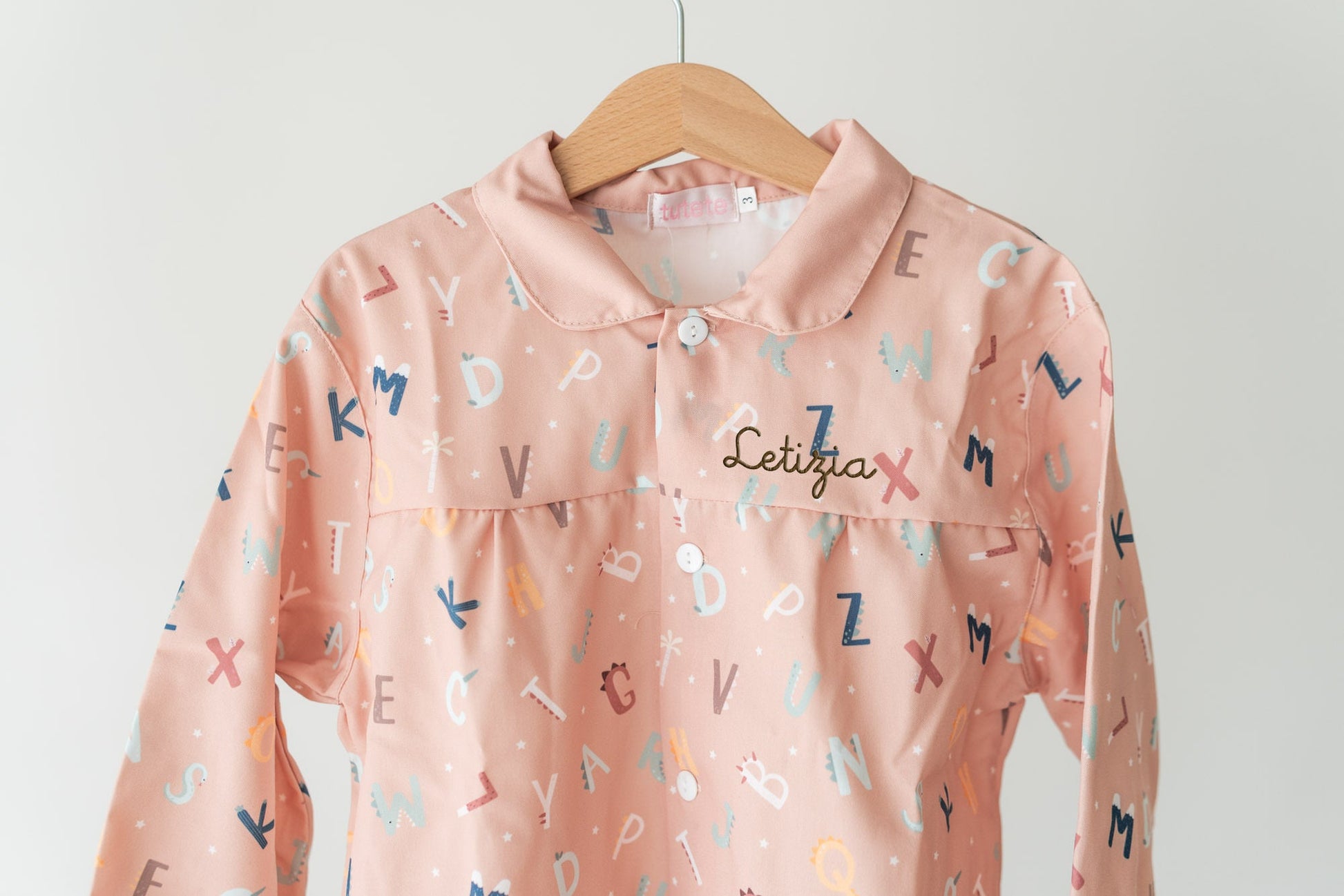Grembiule per asilo in fantasia personalizzato con nome ricamato.